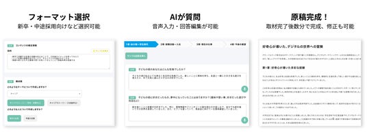 この度、累計1,200社の支援実績と 1万本のインタビュー記事制作ノウハウを元に、プロ編集者のインタビュースキルと記事執筆スキルを搭載した独自AI機能を開発しました。