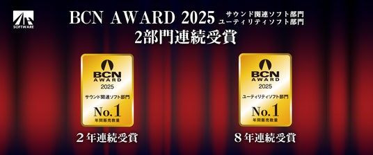 株式会社AHS(東京都台東区、代表取締役 兼 CTO:フア カンル)は、株式会社BCNが発表する「BCN AWARD 2025」において、「サウンド関連ソフト部門」「ユーティリティソフト部門」でそれぞれ年間販売数量1位を獲得しましたことをお知らせいたします。