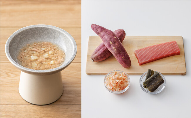 2021年から販売している、「鶏肉・にんじん」、「真鯛・かぼちゃ」に、「まぐろ・さつま芋」を加えて3種類の展開に。だしを重ねて風味を引き上げることで、香り豊かな一皿に仕上げたこれらのスープはどれも猫と共に暮らすSoup Stock Tokyoのシェフが手鍋での試作を重ねながら開発しました。一部店舗では1パックずつから購入が可能に。共に暮らす、大切な家族の好みに合わせて、お好きな味をお選びいただけます。