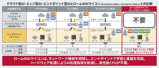 クラウド型AI・エッジ型AI・エンドポイント型AIとロームのAIマイコンとの比較
