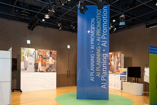 当社が長年培ってきたノウハウを生かしたトレンド分析や市場調査、店頭情報に基づく従来予測と、膨大なデータからAIが分析するデジタル予測を掛け合わせた需要予測スキームに気温分析を加え、新たに月別の需要予測が可能になりました。さらにAIモデルを活用したファンマーケティングや動画プロモーションを展示し、需要予測から企画、販売プロモーションまで、ワンストップでご提案できる当社のスキームの幅広さを披露しました。