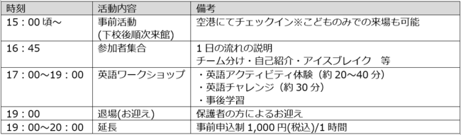 ・キッザニア営業終了後の17:00~19:00に行う特別プログラム。1回2時間英語漬けの環境を提供