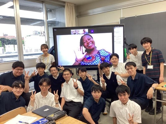 東京都台東区にある岩倉高校でのソーシャルビジネスの授業内での、マラウイスタッフとの交流。