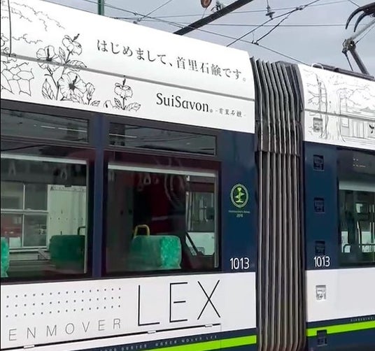 この度、沖縄県外においては初の試みとして、広島電鉄の路面電車1編成をジャックし、ラッピングを施した車両内にSuiSavon-首里石鹸-の香り玉を配し、ご乗車いただく皆さまに癒しの香りを届けます。