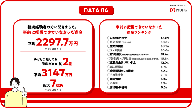 4. 親のお金について、把握できていなかった資産は平均2,297.7万円。
