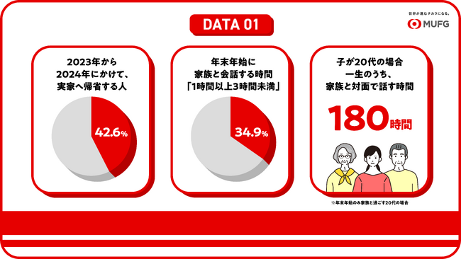 1. 今年の年末年始、親元に帰省する人は約4割、家族との会話はわずか3時間未満!