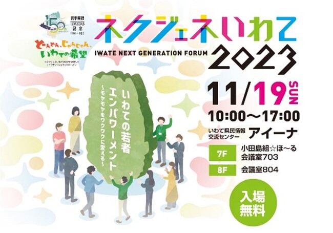 岩手県は、若者の活躍を促進するために「いわてネクストジェネレーションフォーラム」を11月19日(日)にいわて県民情報交流センター(アイーナ)にて開催します。