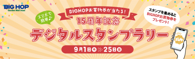 株式会社ギックス(本社:東京都港区、代表取締役CEO:網野知博、以下:当社)は、シービーアールイー株式会社(本社:東京都千代田区、代表取締役社長兼CEO:坂口 英治)が運営する千葉県印西市の「BIGHOPガーデンモール印西」にて、9月1日より開催される買い回りスタンプラリー「15周年記念デジタルスタンプラリー」に、当社が提供する個客選択型スタンプラリー「マイグル」が採用されたことをお知らせいたします。