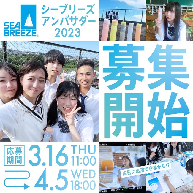 株式会社ファイントゥデイ(本社:東京都港区、代表取締役 社長 兼 CEO 小森哲郎)は、中高生のアクティブな毎日を応援するボディケアブランド「シーブリーズ」において、シーブリーズが好きな現役高校生を対象にした「シーブリーズアンバサダー2023」の新規メンバーを、3月16日(木)から募集開始いたします。