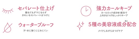 ブラック・ブラウン・クリアのファイバー3種を配合で印象的なロングまつげに。
