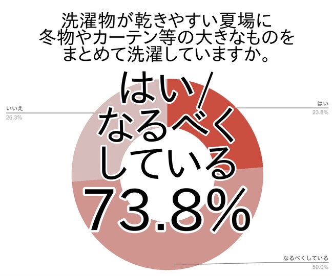 はじめに、洗濯物が乾きやすい夏場に冬物やカーテン等の大きなものをまとめて洗濯しているか尋ねました。