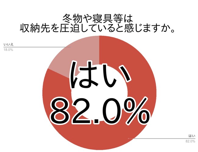 冬物や寝具等が収納先を圧迫していると答えた方は8割強(82.0%)でした。