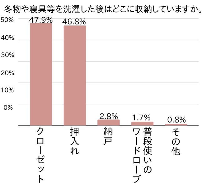 アンケートではさらに一歩踏み込んで、冬物・寝具等のお手入れ後の収納場所ついても尋ねてみました。