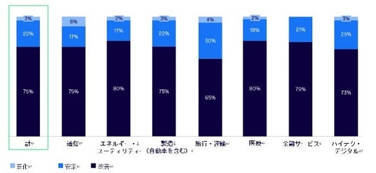 一方、「改善」すると答えたCEOが65%と最も低かったのが、旅行・運輸業界です。新型コロナ禍において影響を受けた旅行・運輸業界では、引き続き需要の不確実性、地政学的リスクや貿易制限による物流コストとサプライチェーンの混乱を背景に慎重な姿勢を保つ傾向にあります。また、AIや自動運転技術などのテクノロジーの急速な変化により既存ビジネスの変革が迫られていることも明らかになってきています。