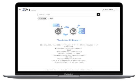 「AIリサーチ」は、蓄積された膨大な動画データの中から、知りたい情報をチャット形式で検索できる機能です。