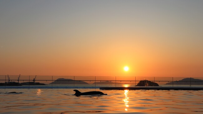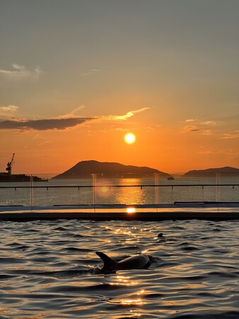 日没前後の時間帯である「誰そ彼時」を満喫できる延長営業も今年で3年目となります。瀬戸内海が一望できるサンセットデッキで心地よい風を感じながら、イルカたちが自由気ままに遊ぶ様子と、沈みゆく夕日を心ゆくまでお楽しみください。