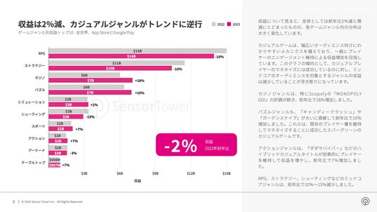 世界のモバイルゲームIAP収益は2%減少も、モバイルカジュアルゲームの収益は8%増加