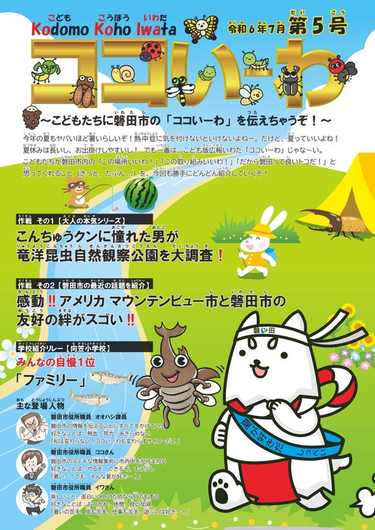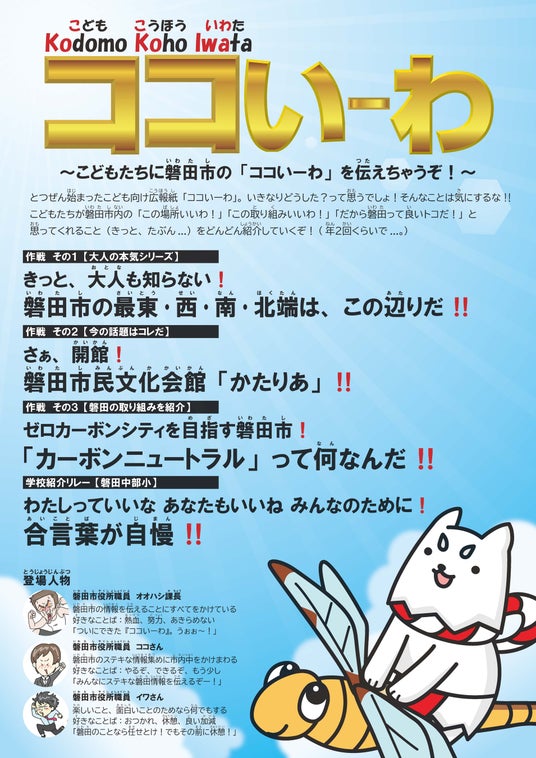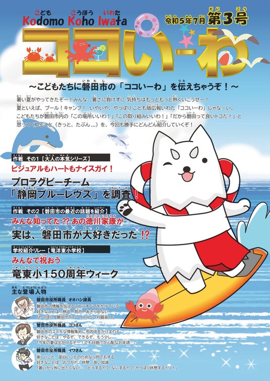 そこで、市内の小・中学校に通う児童・生徒に市の取り組みや市政情報などを分かりやすく伝え、「広報いわた」を読んでもらうきっかけ作りとすることを目的に、こども版広報いわた「ココいーわ」を令和4年から年2回(7月・12月)発行しています。