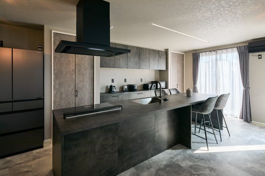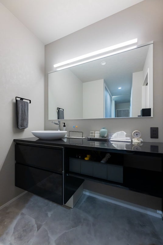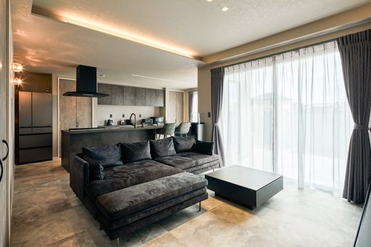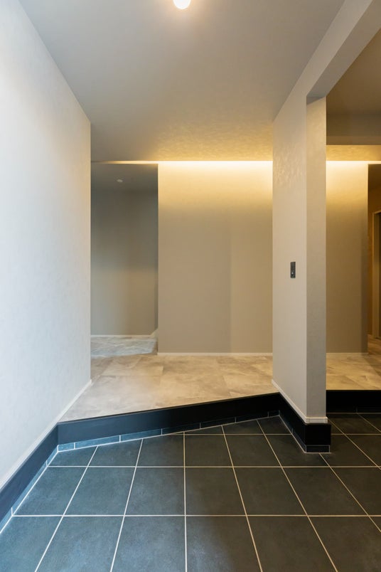グレートーンでまとめたシックな装いに、散りばめた間接照明が映える大人かっこいい空間に仕上がりました。ホテルライク好き必見のお住まいです。