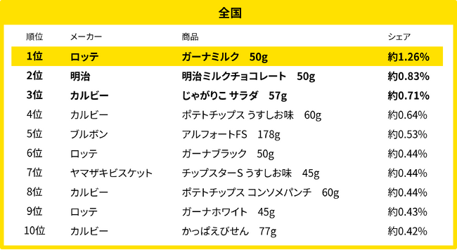 「チョコレート」が全ランキング1位、「スナック菓子」の需要の高さも明らかに!