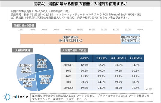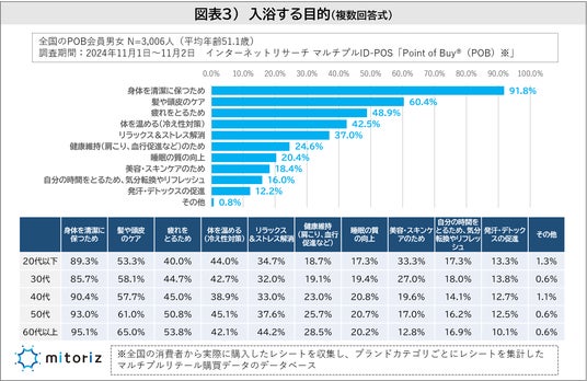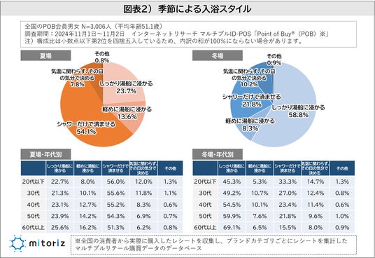 株式会社mitoriz(本社:東京都港区、代表取締役社長:木名瀬博)は、消費者購買行動データサービス「Point of Buy(R)(以下、POB)」の会員3,006人に「入浴に関する調査」を実施致しました。