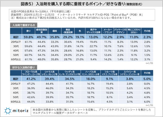 ・入浴剤で最も重視されているのは「香り」で、最も人気な香りは「フローラル系」