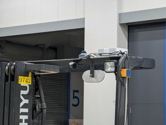 フォークリフト上部中央に装着した青色のセンサーキット