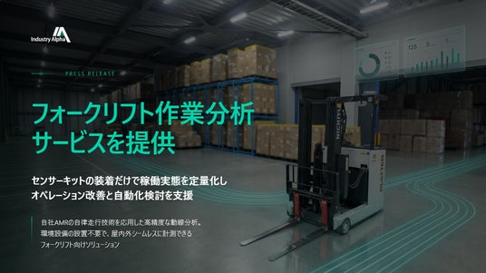 Industry Alpha株式会社(本社:東京都板橋区、代表取締役:渡辺 琢実、以下 Industry Alpha)は、有人フォークリフトにセンサーキットを装着し、走行ルート・作業時間・稼働率などを定量的に可視化するフォークリフト作業分析サービスを提供しています。