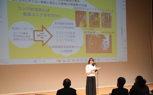 2023年3月よりしもそがWORKSとSDGsに貢献した横浜産コンブを活用した水福連携を開始。廃棄予定の下曽我産梅干の種を生かした入浴剤を考案・有効活用し、小田原型サーキュラーエコノミーを実践。