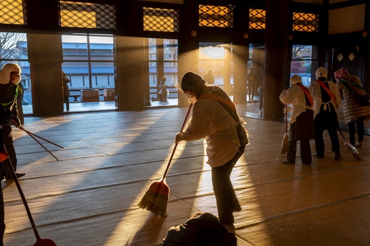門信徒(信者のこと)や近隣地域の方々、一般の方も含め、500人ほどが集まってほこりを払う様子は、京都の年末の風物詩となっています。