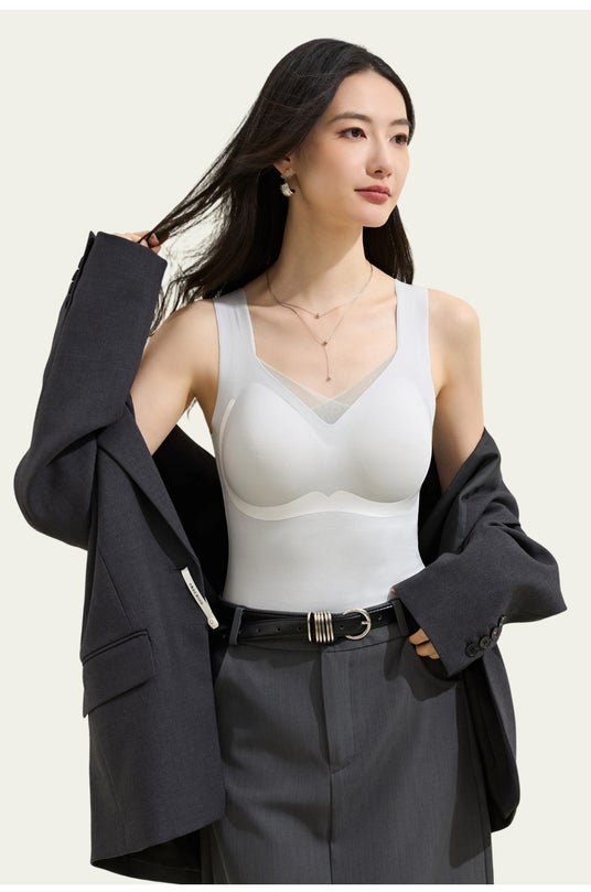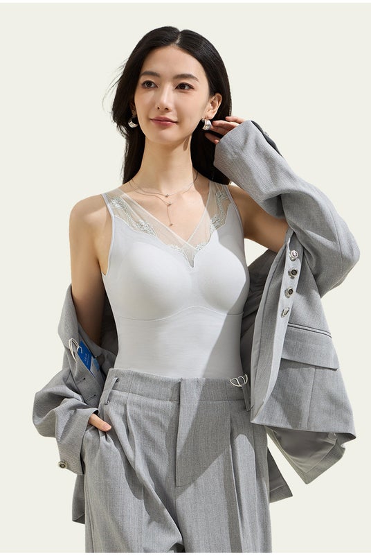 伸縮性のあるブラとキャミソールを一体型にするので、心地よく動きやすい着心地に