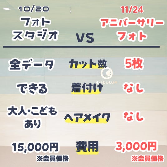 COCOLONはゆったりと撮影をすることができるイベントを開催します。