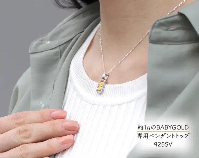 またBABYGOLD専用のピッタリ入るペンダントトップに入れる事でジュエリーとして身に着ける事も出来ます。