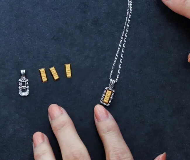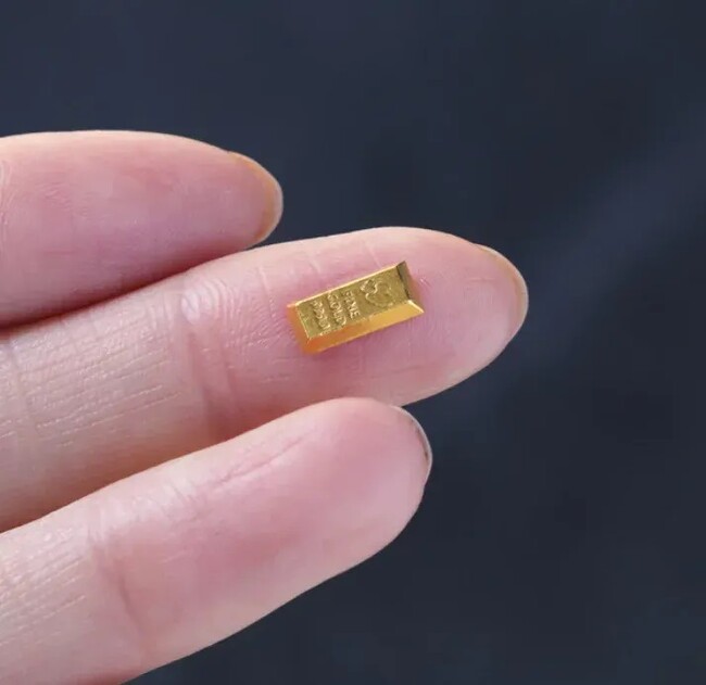 約1gの金と言えばあのカタチ「インゴット(金塊)」型のミニチュアサイズとなっております。