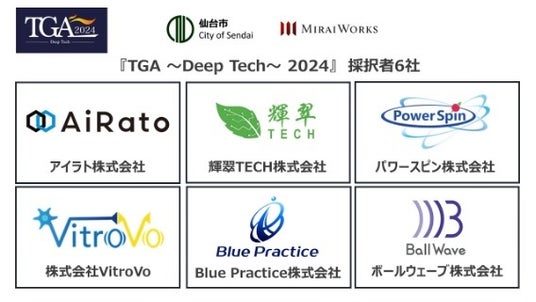 ミドルステージを中心とした研究開発型スタートアップに対して成長支援を提供するプログラム『TGA~DeepTech~2024』の採択企業6社が決定しました。