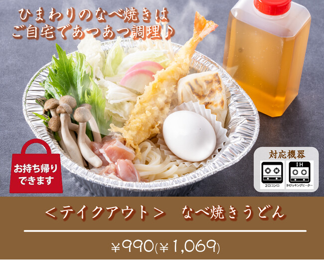 今年は、なべ焼きうどんのテイクアウトもご用意しておりますので、ご自宅でも召し上がっていただけます。