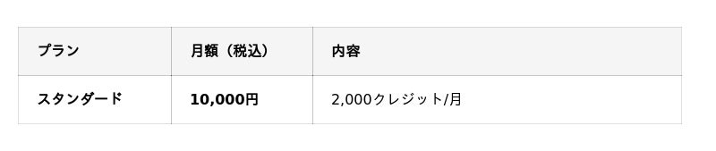 従来、外注で15万~50万円かかっていた記事LPが、Pro AIなら**月額1万円で何本でも生成可能**。テキストのみの記事LP構成案であればクレジット消費なし。月間1,000本以上の構成案を出力できます。