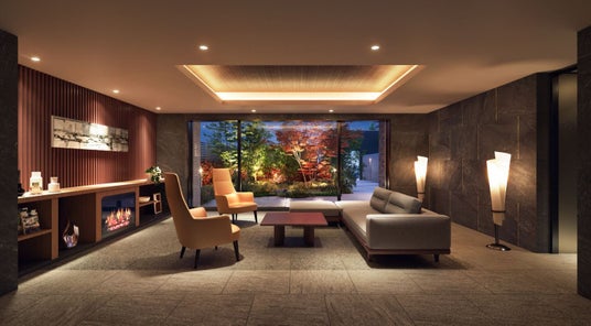 外構やファサードデザインは弘前の中心市街地の顔となるにふさわしい長いアプローチに植栽を豊富に配し、喧騒から離れた静寂を感じていただけるよう贅を尽くした邸宅美にこだわりました。