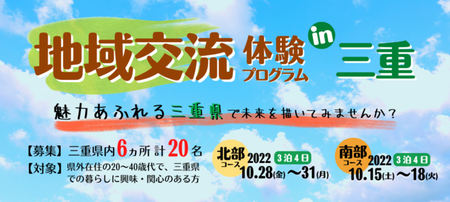 地方移住に関心のある三重県外の若者を募集し、地域づくり等の現場体験や、そこに住む住民との交流などを通じて、地域とつながり、活躍の場を見つけてもらう『地域交流体験プログラムin三重』を実施し、参加者を正式募集します。
