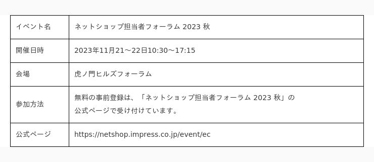 株式会社CRI・ミドルウェア(本社:東京都渋谷区、代表取締役社長:押見 正雄、以下「CRI」)は、2023年11月21~22日に行われる通販・ECにたずさわる経営者や責任者、担当者の皆さまを対象としたイベント「ネットショップ担当者フォーラム 2023 秋」のセッションに登壇します。