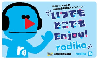 一般社団法人日本民間放送連盟(民放連)ラジオ委員会(委員長:檜原麻希・ニッポン放送代表取締役社長)と株式会社radiko(池田卓生・代表取締役社長)は共同で、radiko普及推進キャンペーン「いつでもどこでもEnjoy! radiko」を2月24日から実施します。