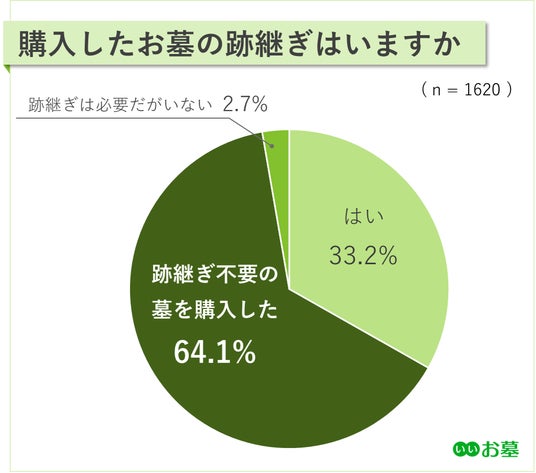 - お墓選びで重視したことは「お墓の種類」が最多、「金額」「自宅からのアクセス」も重視― 承継者不要のお墓の購入者は64.1%、継承者がいるという回答は33.2%に