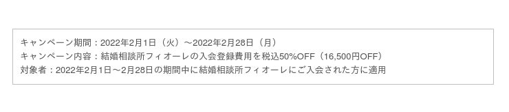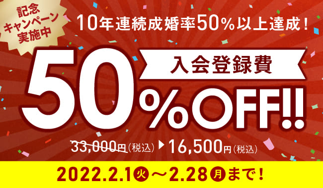 このたび、成婚率50%を継続して達成したことを記念し、新規入会者へ向けたお得なキャンペーンを実施いたします。