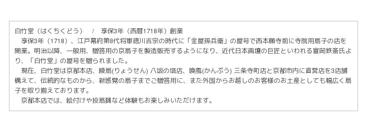 扇子の中でも「京扇子」とは、扇面・扇骨・仕上げ加工すべて京都・滋賀を中心とした国内で生産した扇子の事を言います。なんと扇子ができ上がるまでには、骨作りから地紙づくり、絵付け、組み立てなど約88の工程があり、そのほとんどが手仕事で熟練を要するため、それぞれが分業になっており、職人たちが各々の腕を振るいます。