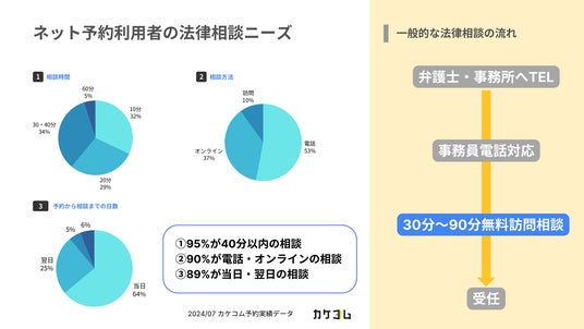 法律相談では短時間かつオンラインの相談を当日予約したいというニーズがありますが、一般的な流れではそのニーズにアクセスできませんでした。