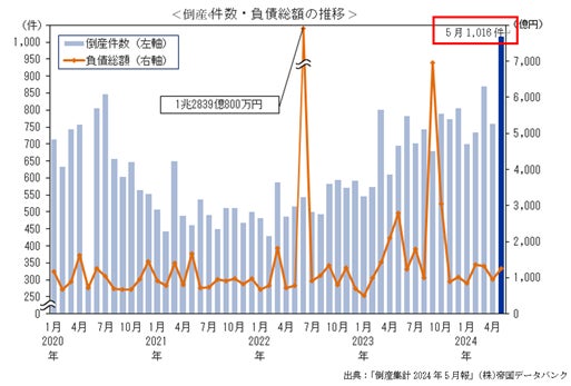 帝国データバンクの「倒産集計2024年5月報」によると、2024年5月の倒産件数は全国で1,016件、負債総額は約1,261億となっており、12年ぶりに月間の倒産件数が1,000件を超えています。仕入価格や人件費高騰に伴うコストの上昇、金利の上昇、新型コロナ関連の資金繰り支援策の終了など、今後も企業倒産は増加する可能性があります。