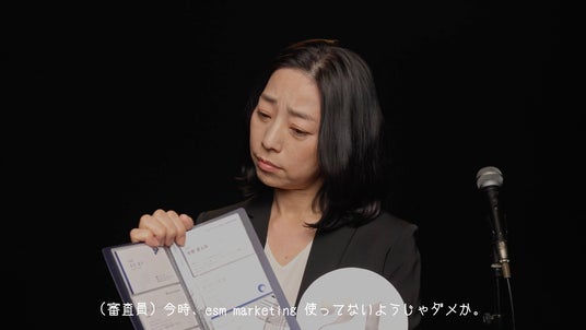 スーツを着た会社員が、日常ではありえない業務担当者のオーディション番組に参加するという、「ミスマッチ感」が独特の世界観を生み出しています。応募者は、「名刺のファイリング」や、「大規模なシステム開発」、「紙の稟議書の押印を集める」といった昔ながらの業務を自身の得意領域として歌やダンスを用いてアピールします。それに対し、審査員から「今時、まだそんなことやってるの」と痛烈に指摘され、「今やesmシリーズが業務上必須である」ことを示唆します。応募者にとって当たり前だった旧来の業務のやり方を、esmシリーズを使用することで効率化ができることを表現した映像となっています。