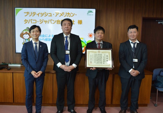 4月3日(水)宮崎市役所にて、清山市長からブリティッシュ・アメリカン・タバコ・ジャパン合同会社南九州営業所の中田エリアマネージャーに感謝状をお贈りしました。