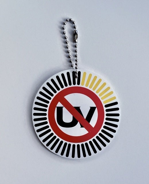 【NO!UVマーク】は、難病である色素性乾皮症という生まれながらに紫外線に当たることができない病気の子どもを持つ父親がデザインしたものです。このマークは、患者さんとその家族が長く苦しんできた「見てすぐにわかるようにしたい」「XPだけではなく他の紫外線に当たれない方々にも使ってほしい」という思いから生まれました。