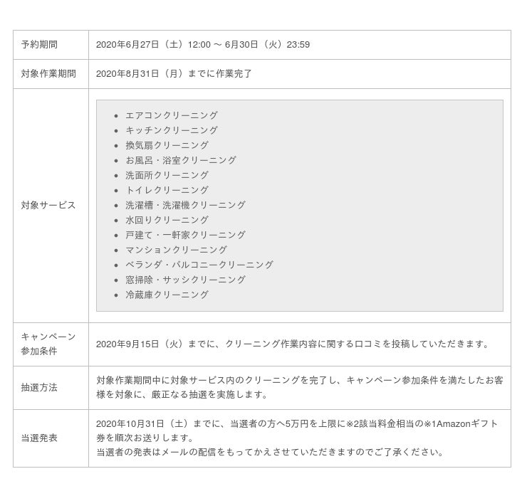「ハウスクリーニング利用料を“10人に1人”全額還元!キャンペーン」実施概要